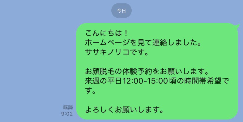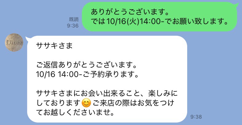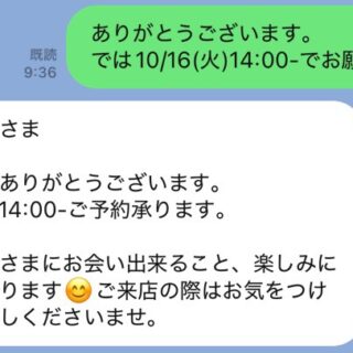 営業時間外や定休日などはすぐに返信が出来ない場合がございます。 時間帯や日にちに合わせて下記ネット予約もご活用ください。