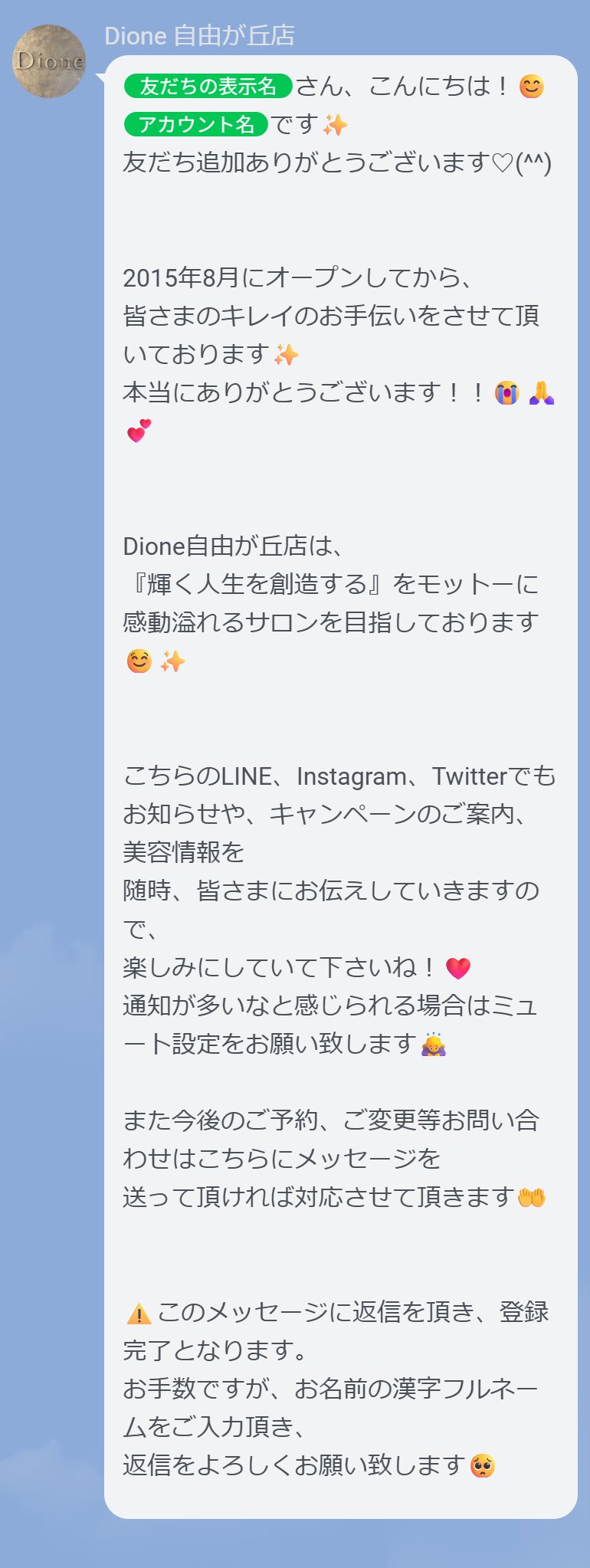 初めてのお客様はDione自由が丘の公式LINEにご登録ください。