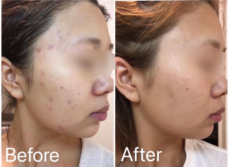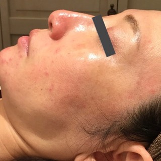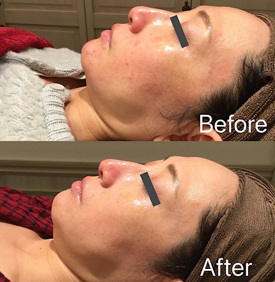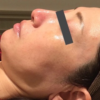 今回は赤みが多い肌状態でしたが通常通りのお顔全体の照射を行いました。赤みも引きお肌のトーンもアップしています。